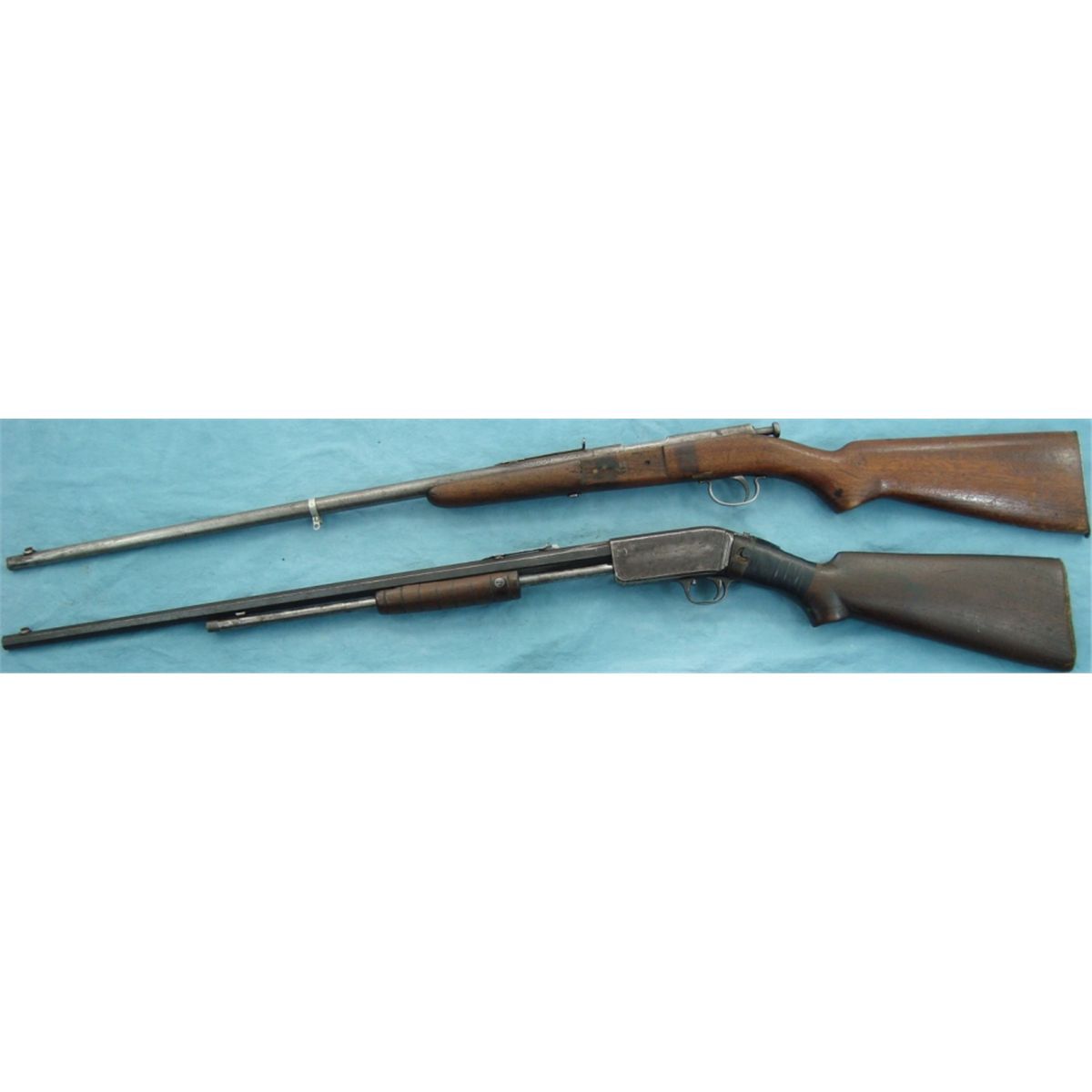 Marlin Model 38 Pump 22 w/oct. bbl. #NSN; in rough condition. Remington Model 33 Single shot 22, #NSN; in rough condition