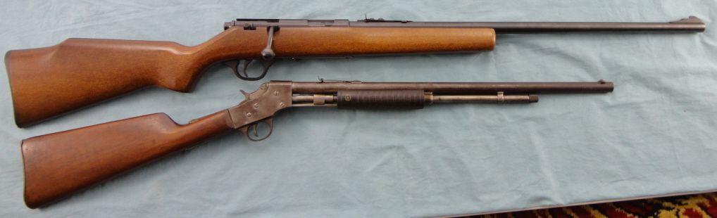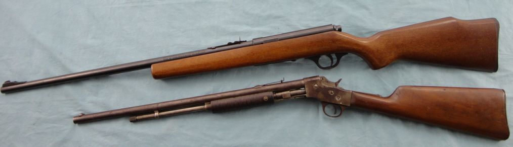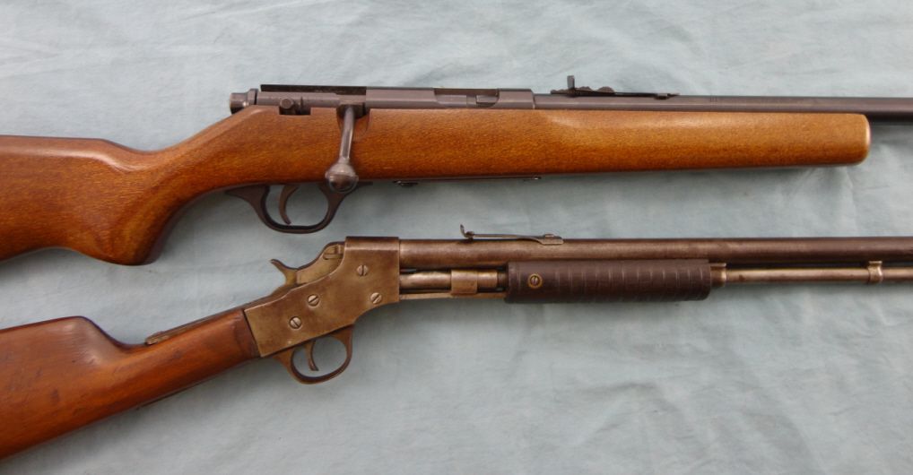 Stevens Visible Loader 22 cal. #P607; in rough condition. Marlin Model 25 22 cal Bolt #14710259; good condition missing magazine.