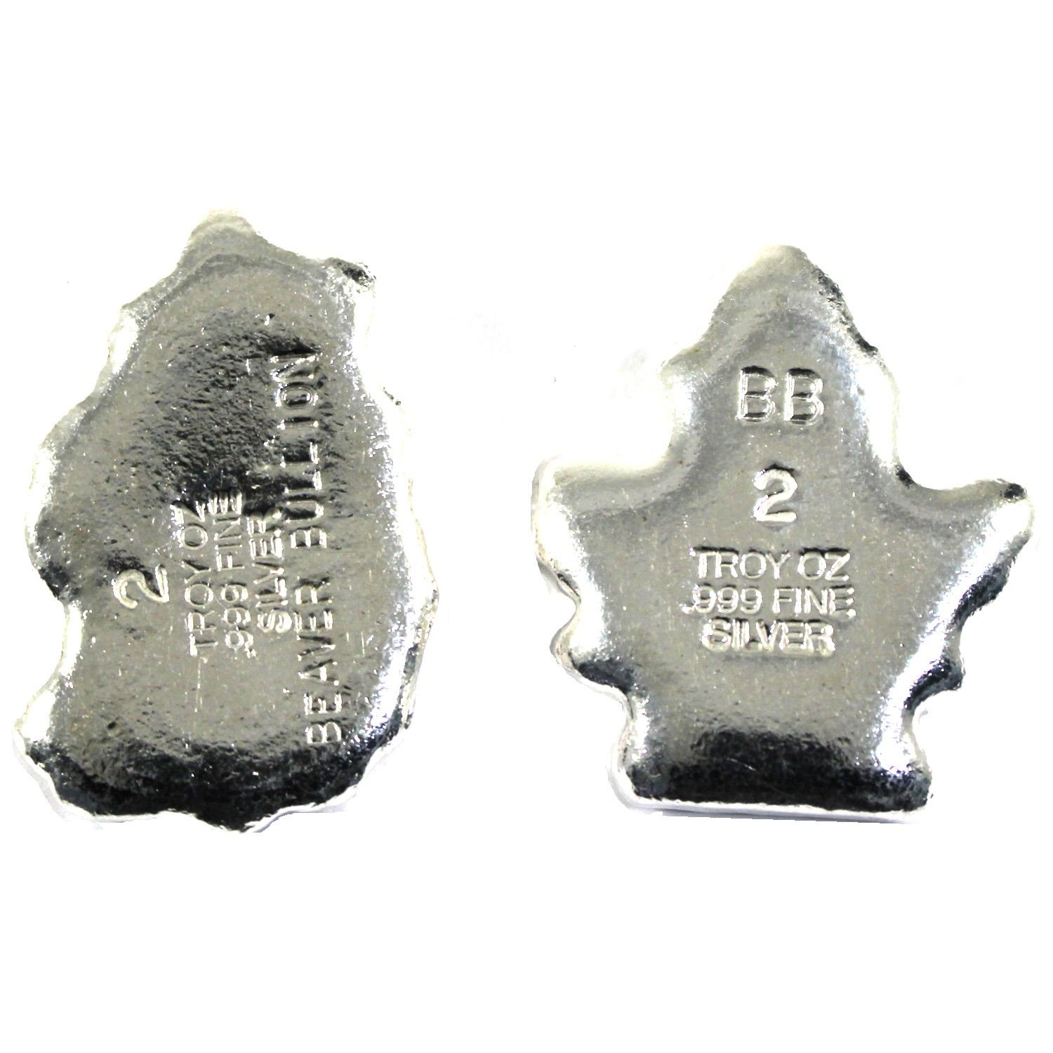 Pair of 2oz Beaver Bullion 3-D Hand poured Silver ingots. Lot includes Horse Head and Maple Leaf. 2pc (Tax exempt)