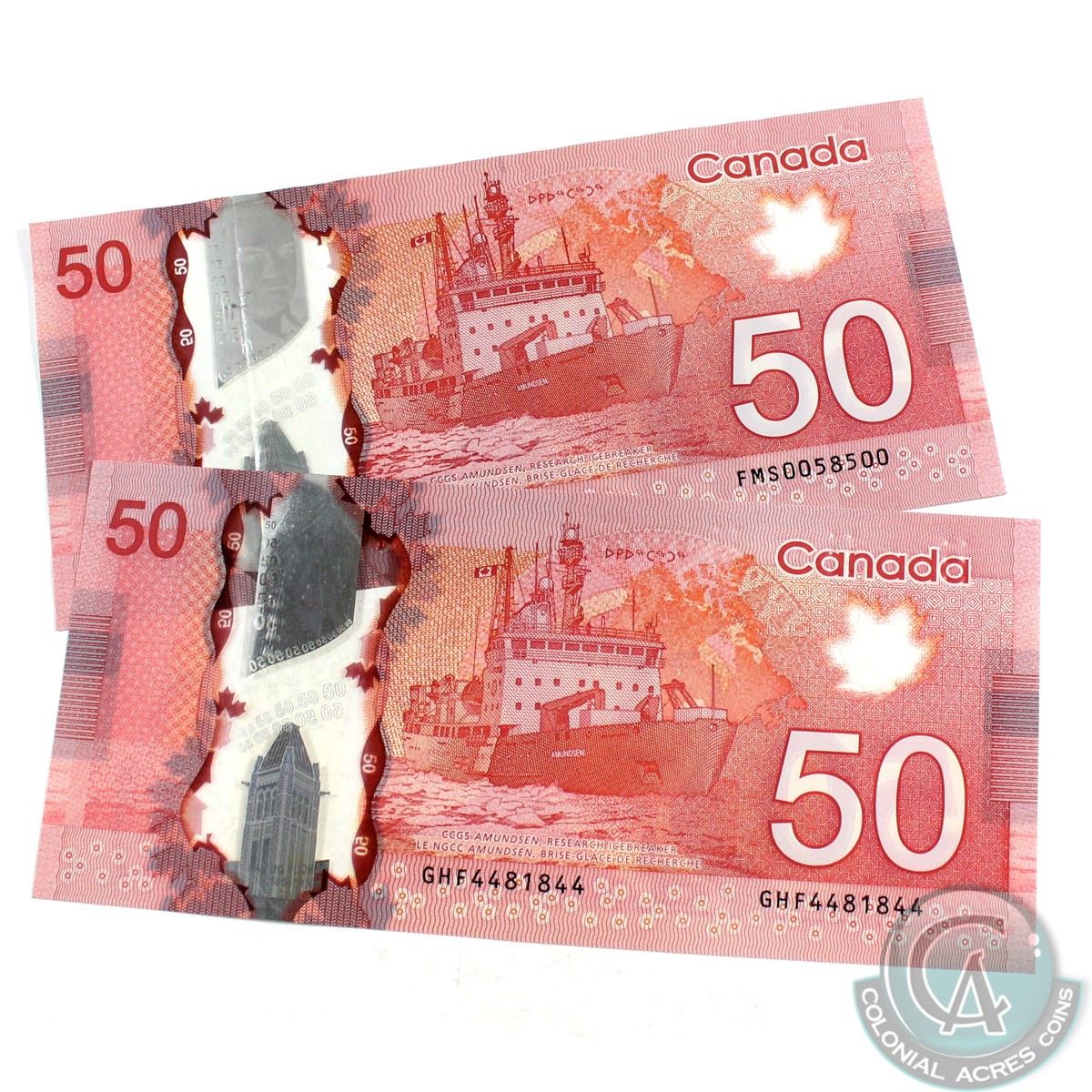 Pair of 3 Digit RADAR $50.00 Notes from the 2012 Frontier Series. 2 pcs