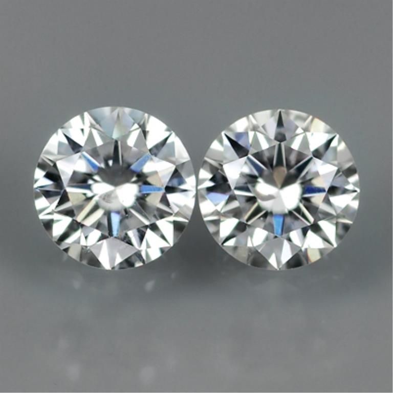 Pair of 4 Ct. brilliant cut VVS1 Color Round Cut BIANCO diamondes. In 1983, a Russian scientist developed a method of growing crystals with many of the same characteristics of a natural earth mined diamond. The new stone was then cut, using the same