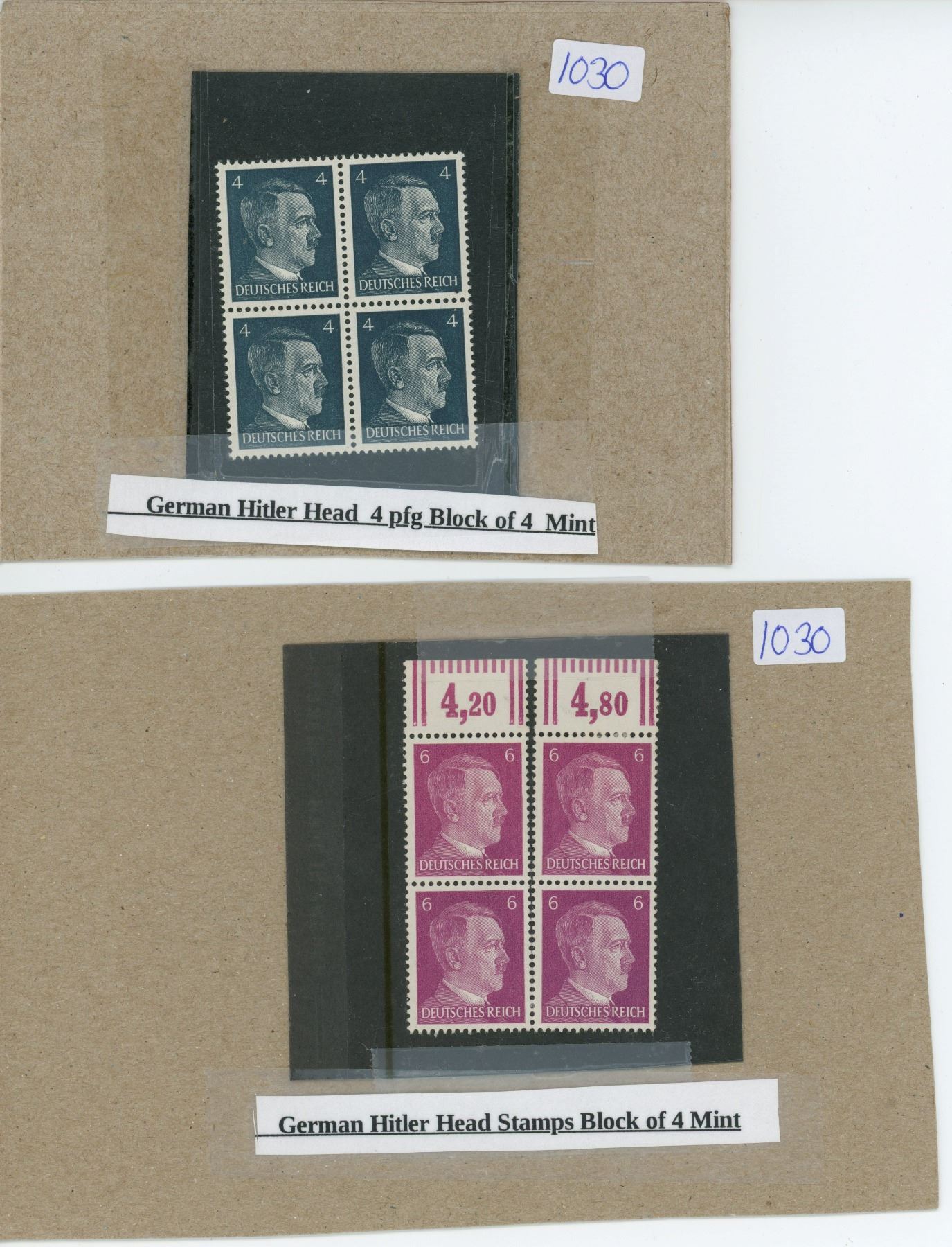 Pair of 4 block, Hitler Head stamps - 4 and 6 c - mint