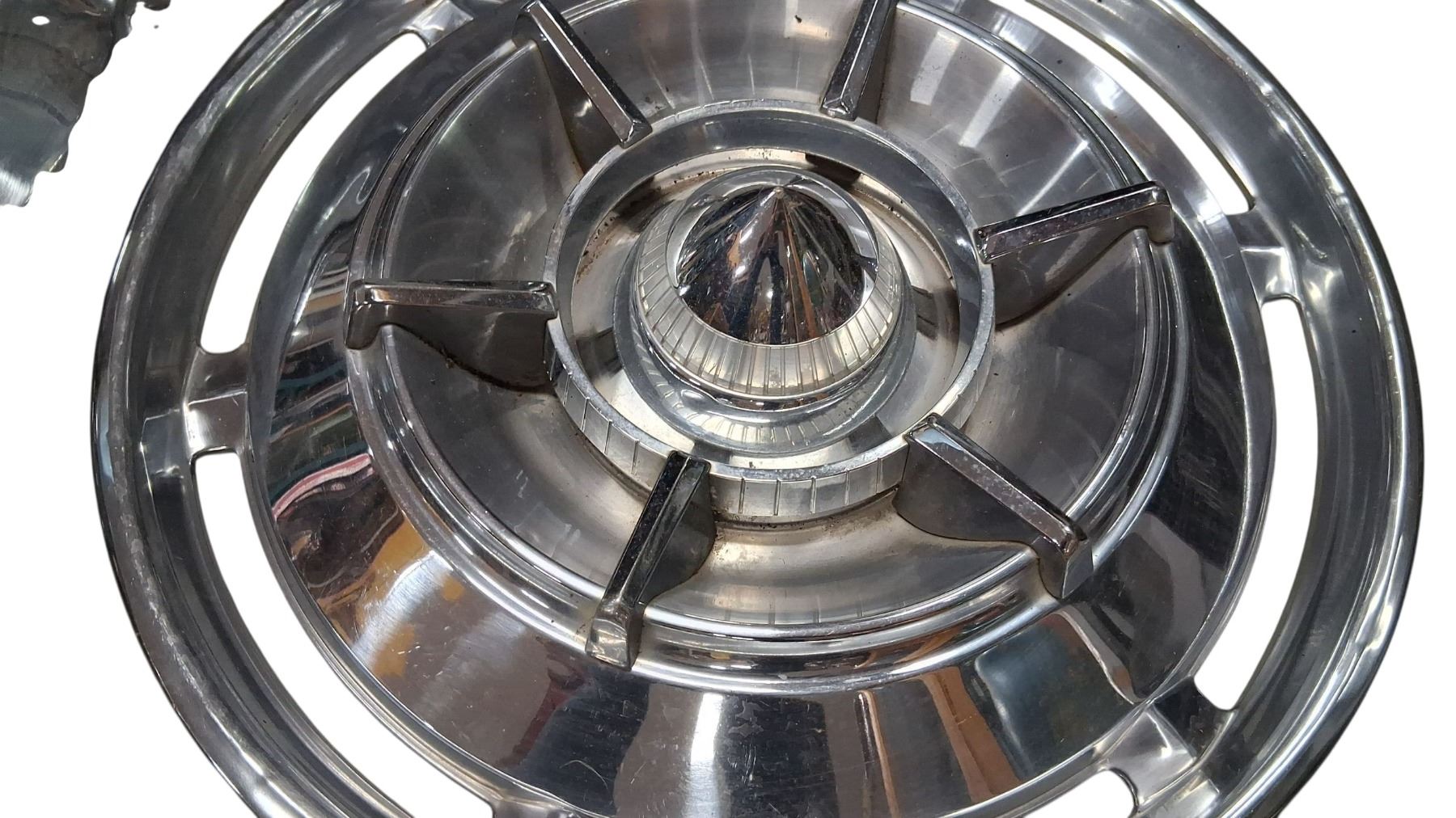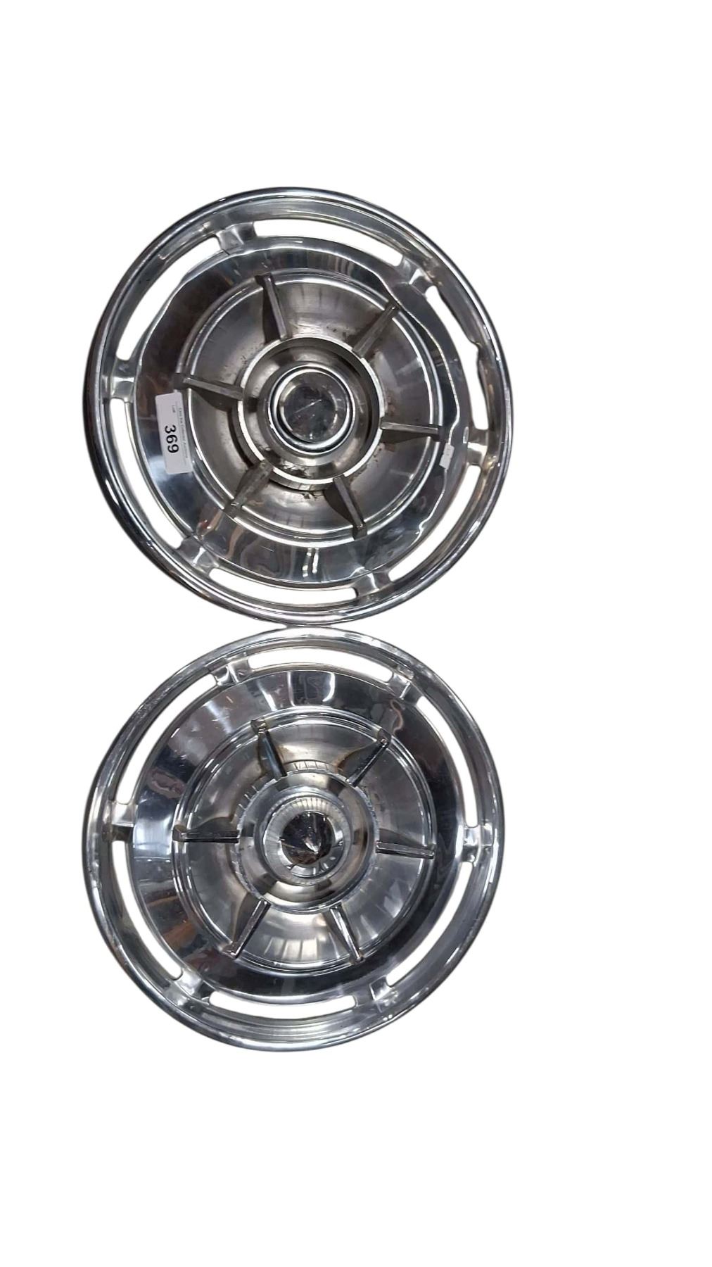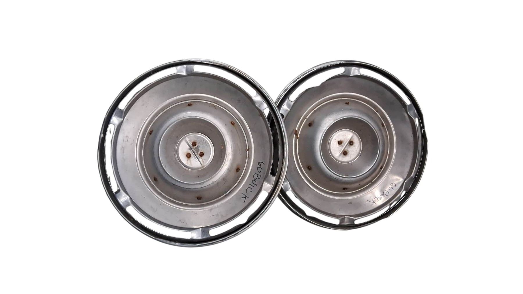 Pair of 60 Buick hubcaps, 1 missing small collar from center