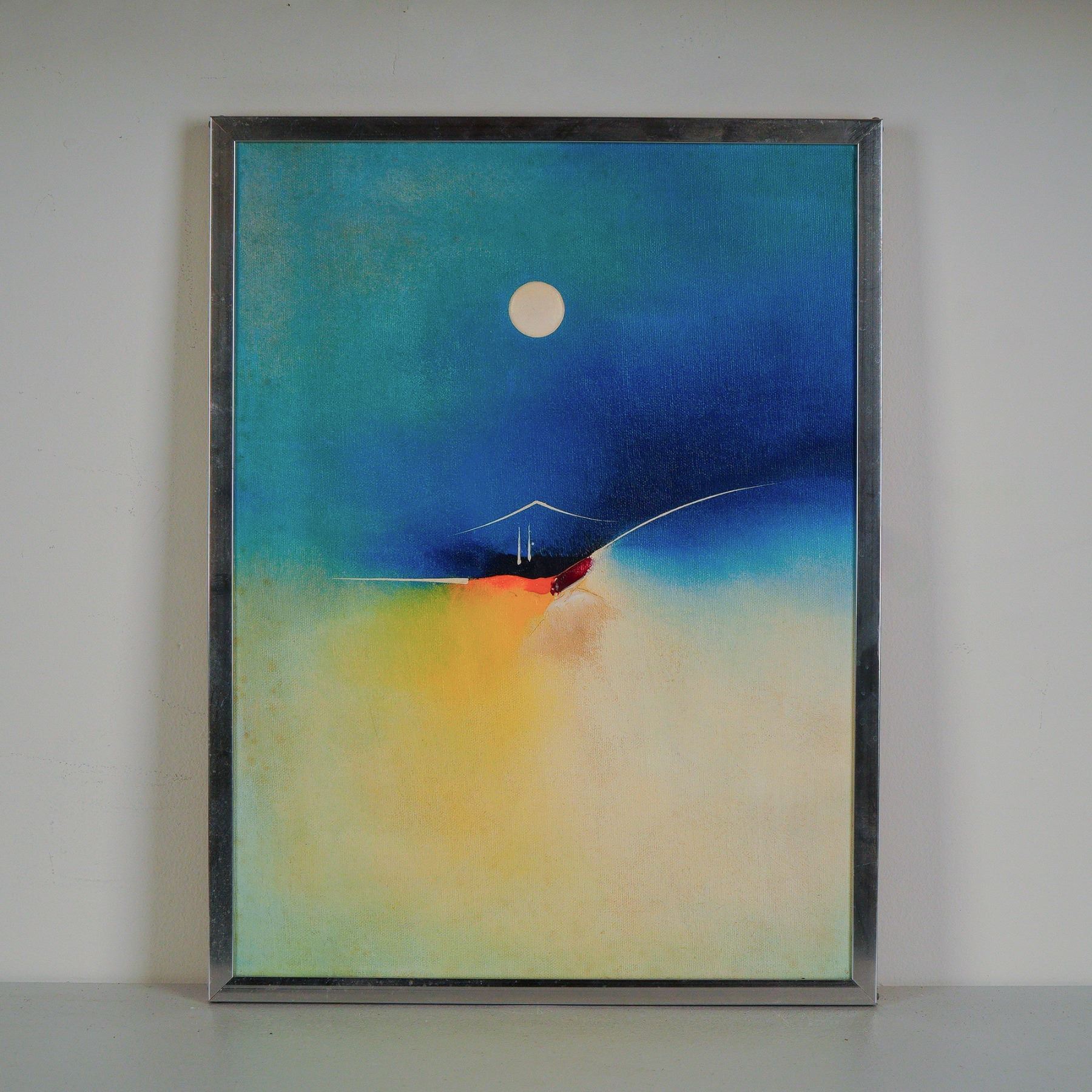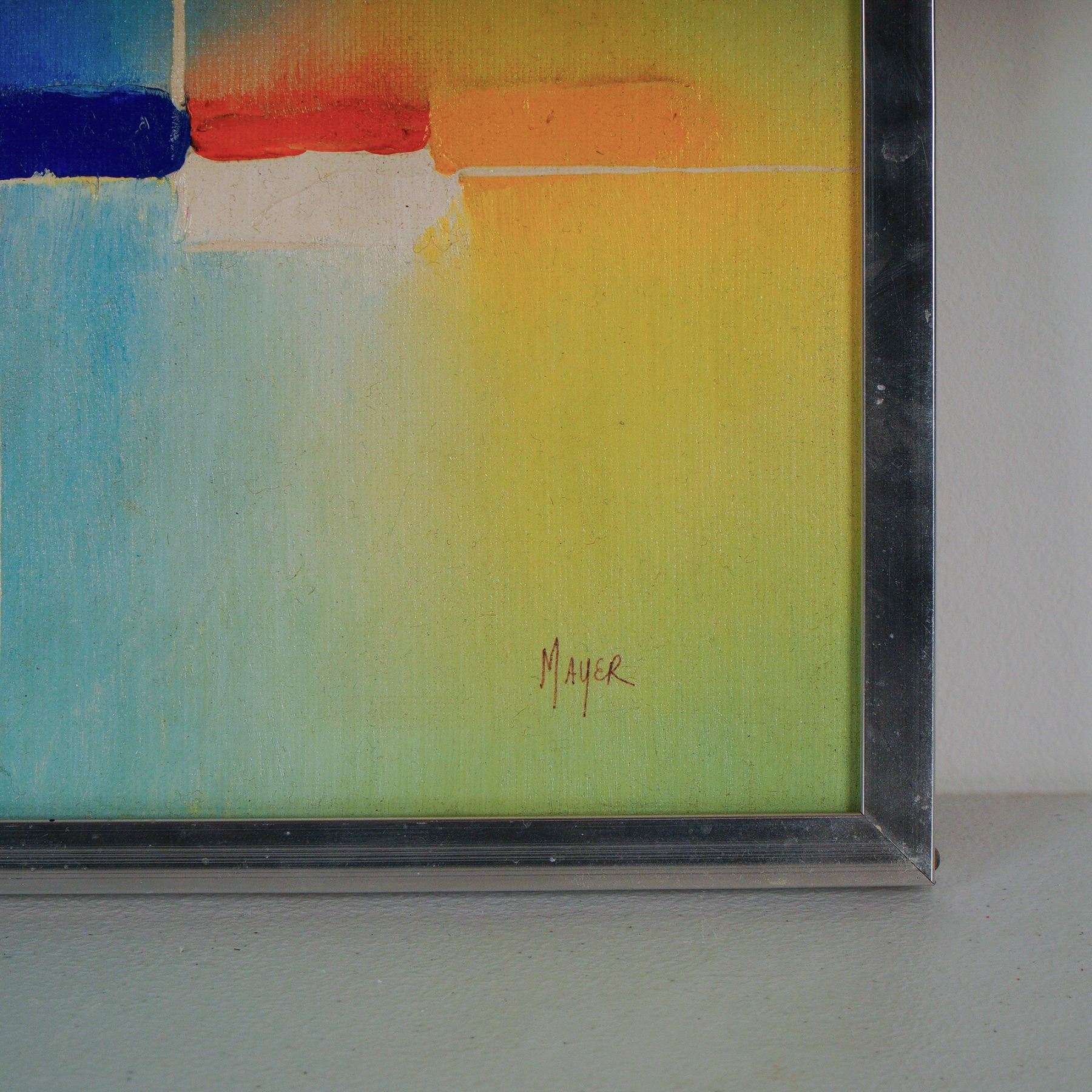 Pair of Acrylic on Canvas Paintings, Atmospheric Abstractions, Signed Mayer