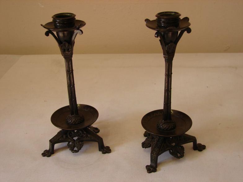 Pair of Aesthetic Style Bronze Candlesticks in the style of Christopher Dresser