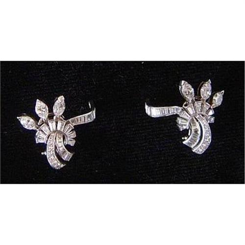 A total of approximately 6 carats of wonderful diamonds in a platinum setting. 6 marquis, 50 tapered baguettes, 6 single cuts and 12 full cuts. All G color, VVS1. Earrings measure approx. 1 inch by 1 inch. Post and clip. A magnifent pair of earrings from the 40's. </td></tr><tr> <td> </td></tr><tr> <td>Reference #: DBBS01</td></tr><tr><td>Condition:Excellent</td></tr><tr><td>Year:1940</td></tr><tr><td>Title:Pair of American Retro Diamond Earrings</td></tr><tr><td>Location:New York USA</td></tr></table>