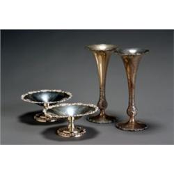 Pair of American Sterling Trumpet Vases and a Pair of Compotes
