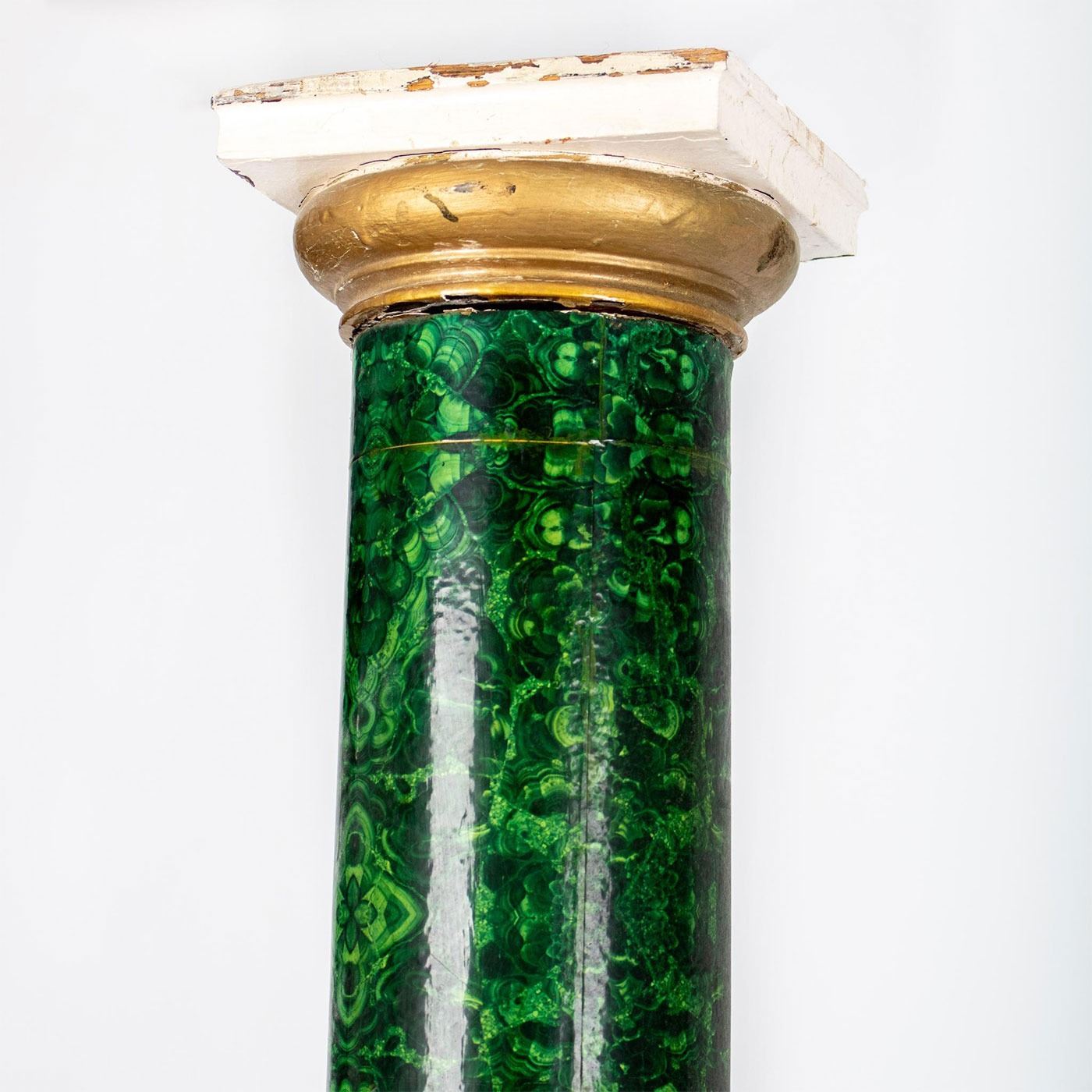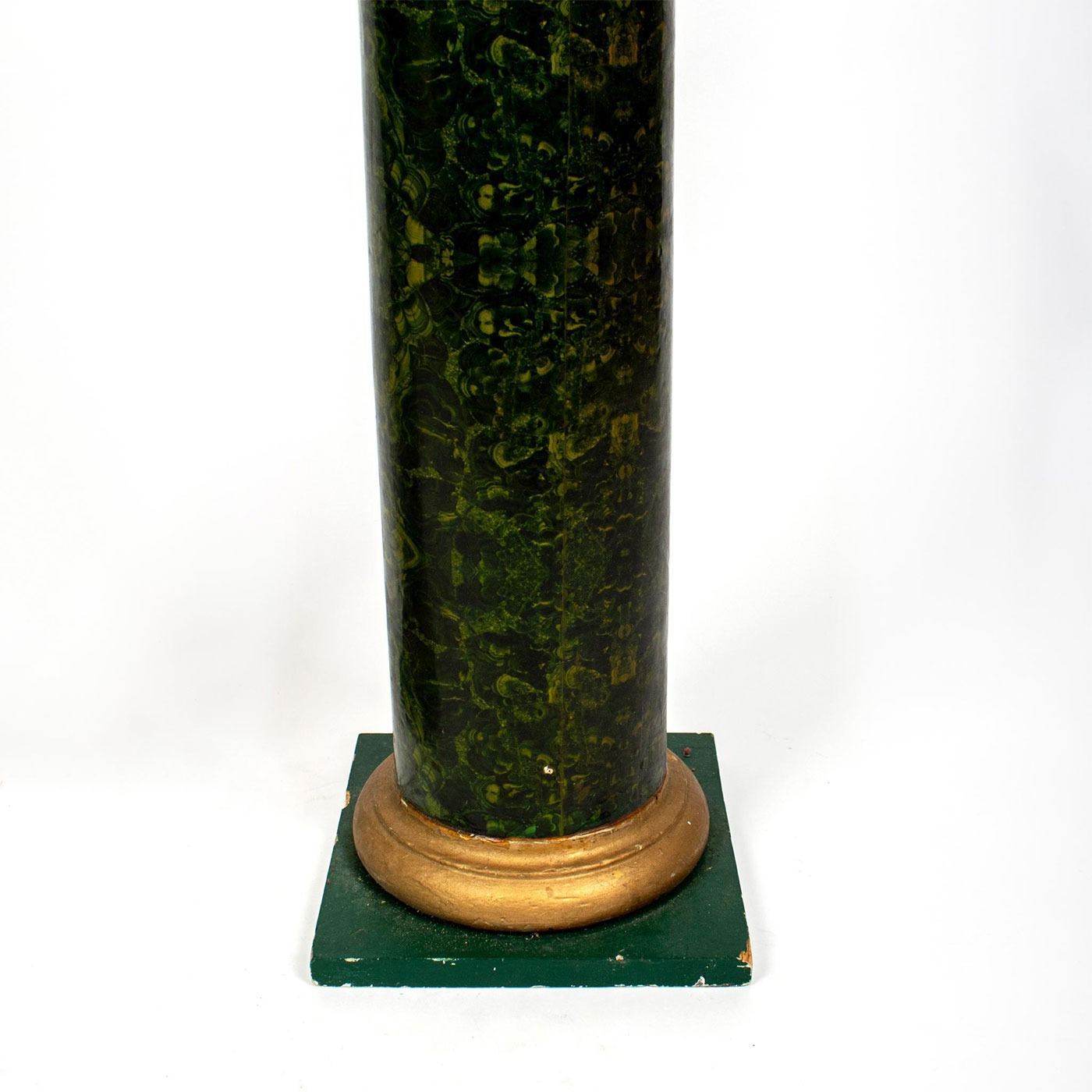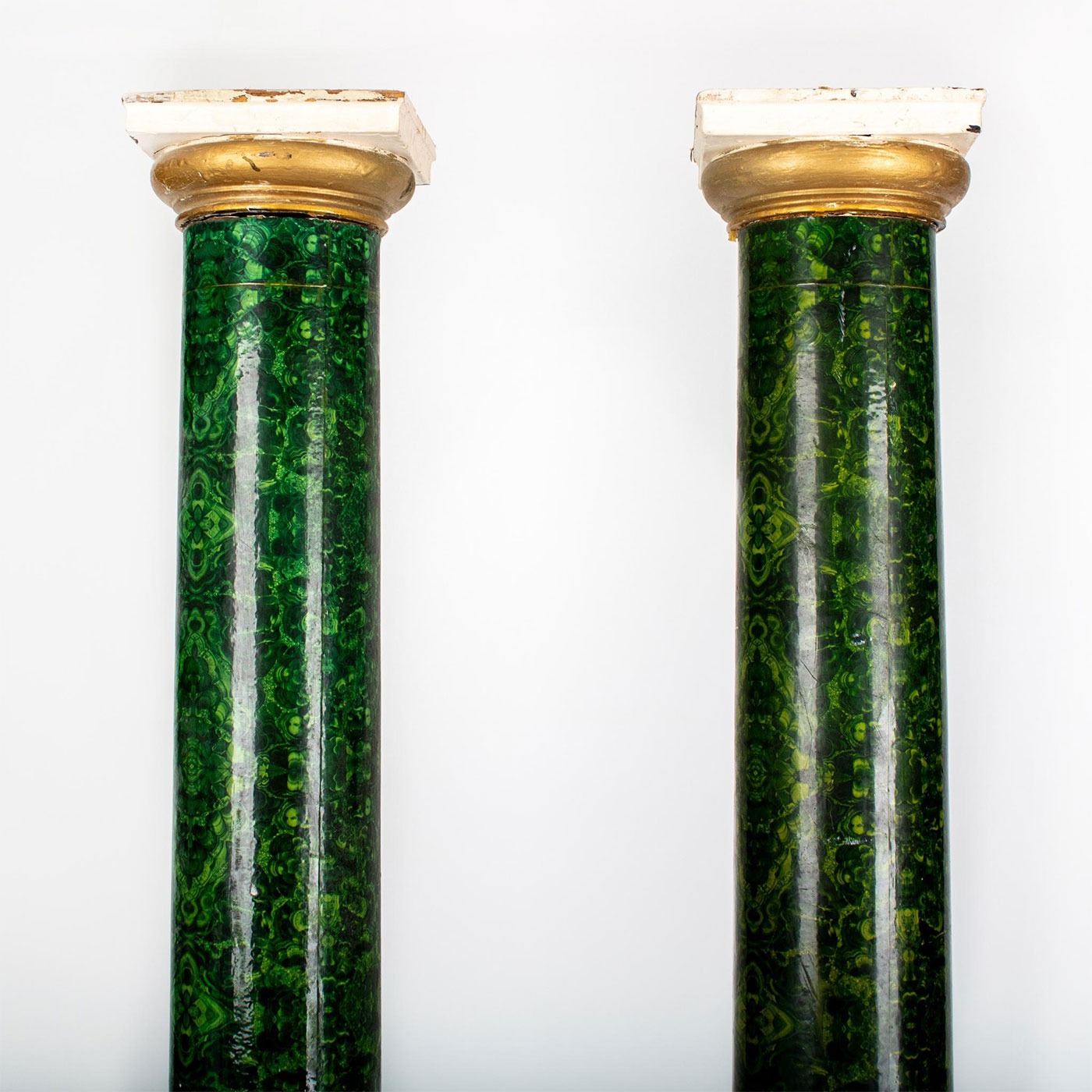 Wrapped in dark green stylized coloration. Carved wood, hand painted bases with accents of gold gilt.