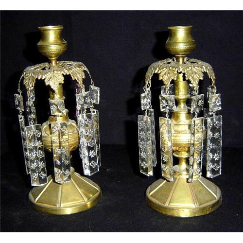 <tr><td>Title:Pair of Antique Bronze and Crystal Candlesticks</td></tr>