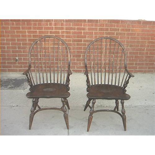 Pair of Antique Combback Windsor Continuous Arm Chairs. Thirteen tapered spindles support shaped comb crest. Were do find such a pair, great find.</em></td>