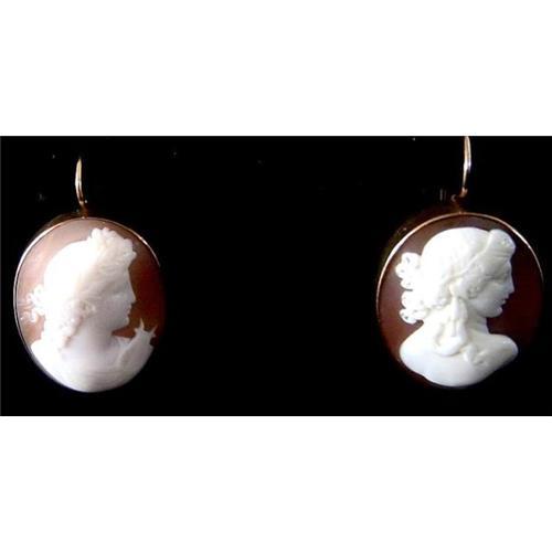 Pair of Antique Shell Cameo Earrings Circa. 1900