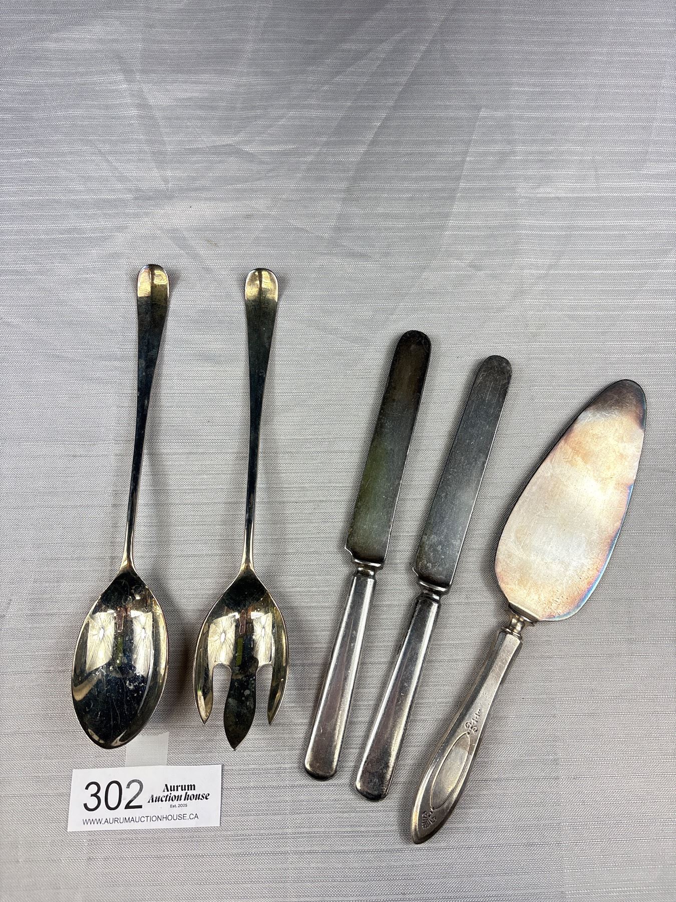 Pair of Antique Silver Handle Knives, Set of 4 Spoons, Set of Salt Spoons + More