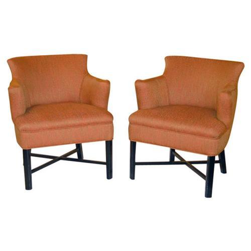 </font></strong>Pair of arm chairs in the style of Harvey Probber with ebonized legs.