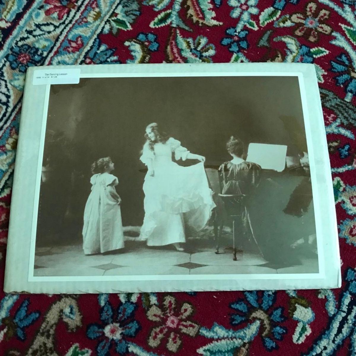 Pair of modern, Art Nouveau-style sepia tone photo prints. Printed on heavy card stock for the American Heritage Gallery in Atlanta, Ga. The Dancing Lesson & The Whisper of a Muse. 11" X 14" each. In original shrink wrap with backing board. In unused condition.