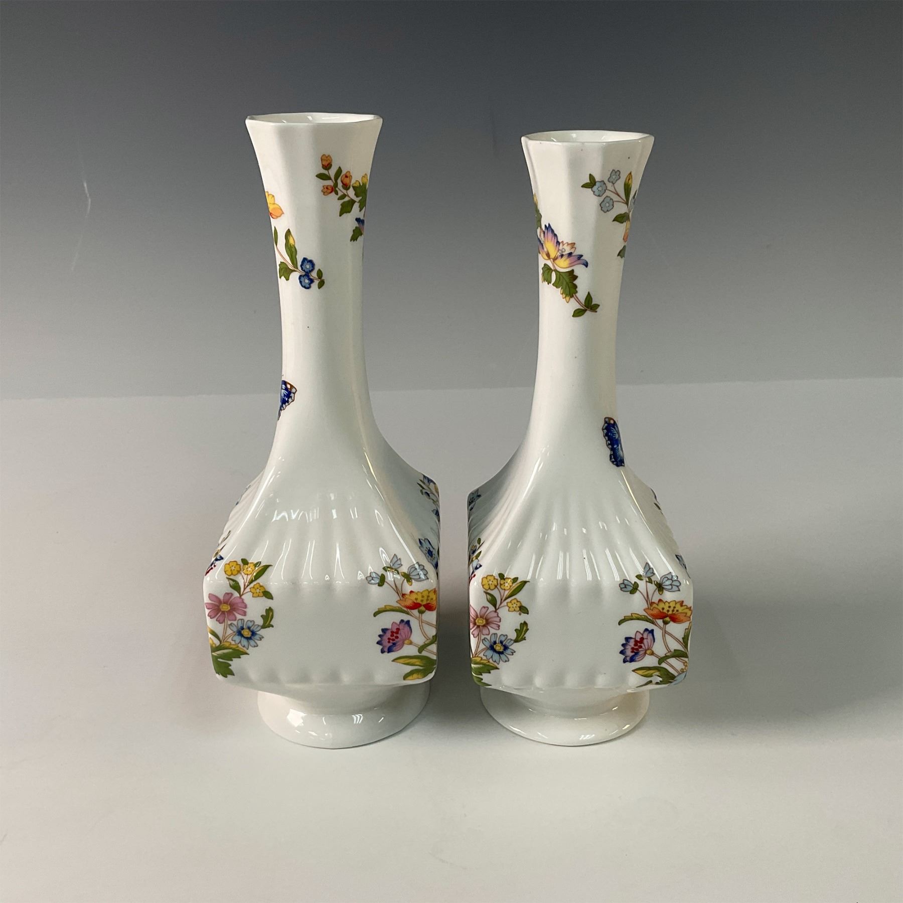 Pair of Aynsley Bone China Table Vases, Cottage Garden
