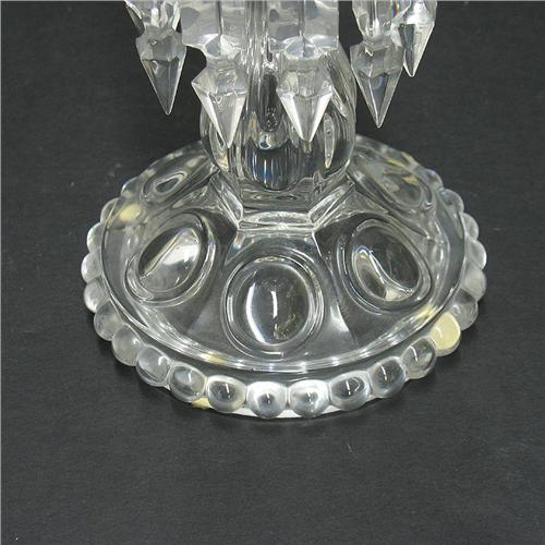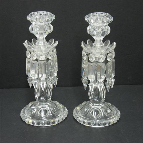 Pair of Baccarat crystal candlesticks with attached cut crystal prisms; signed on bottom; 20th C.; 12" high; no visible defects