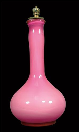 Pair of Barber Bottles, cranberry glass and cranberry milk glass with floral design. No chips or cracks. Aprox. 7 1/2 inches tall.