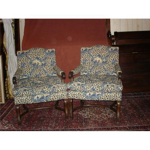 Pair of Beautifully Appointed Fautieuls Chairs. There are a couple of small tears in the fabric on the back of the chairs, but the rest of the fabric is in very good condition.