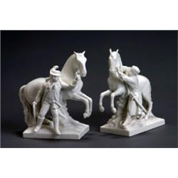 Pair of Berlin White Glazed Porcelain Equestrian Groups