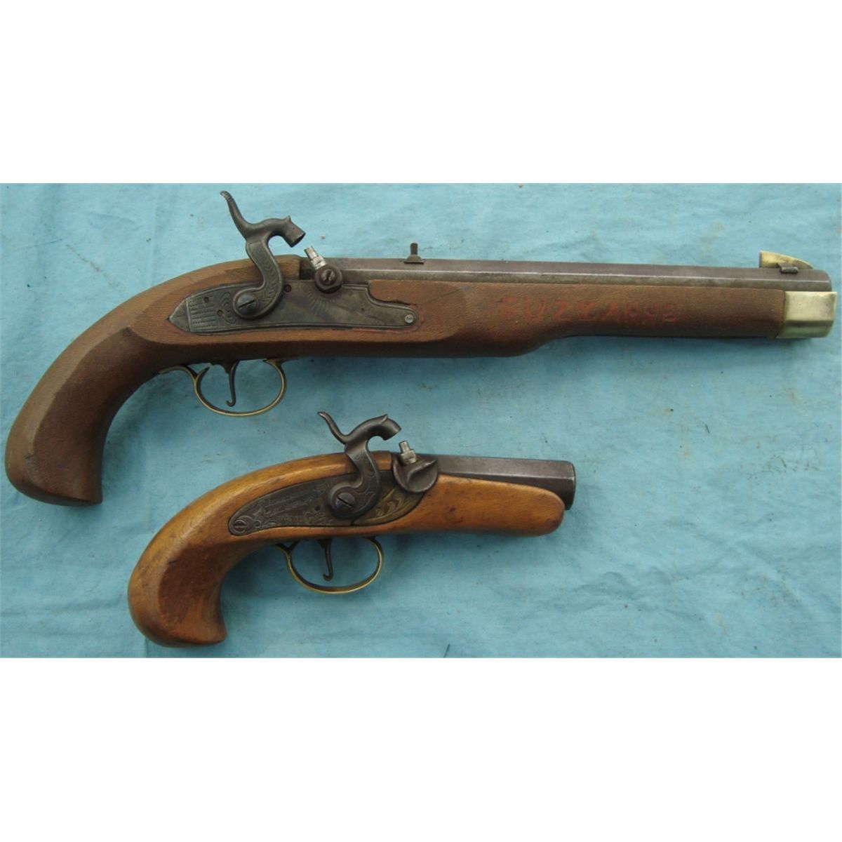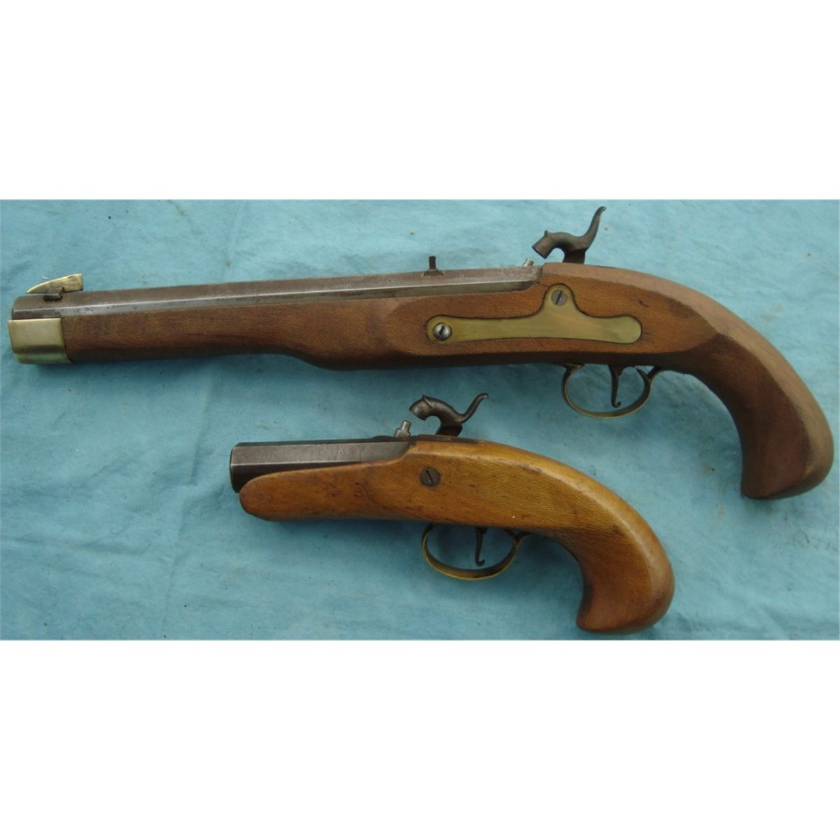 Small Derringer style approx. 45 cal. Larger is 45 cal. Black Powder pistol