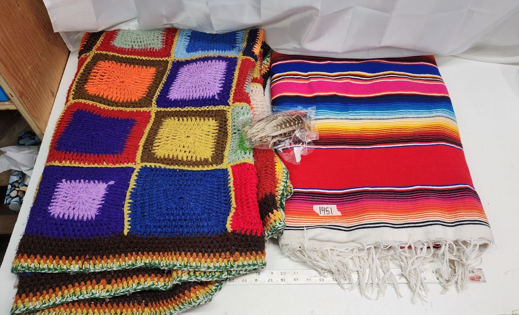 Pair of Blankets - 1 is knitted/crotchet & crafting feathers