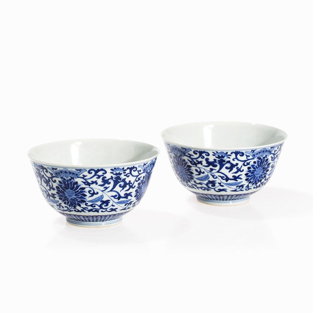 Pair of Blue and White Bowls, Guangxu Mark & Period