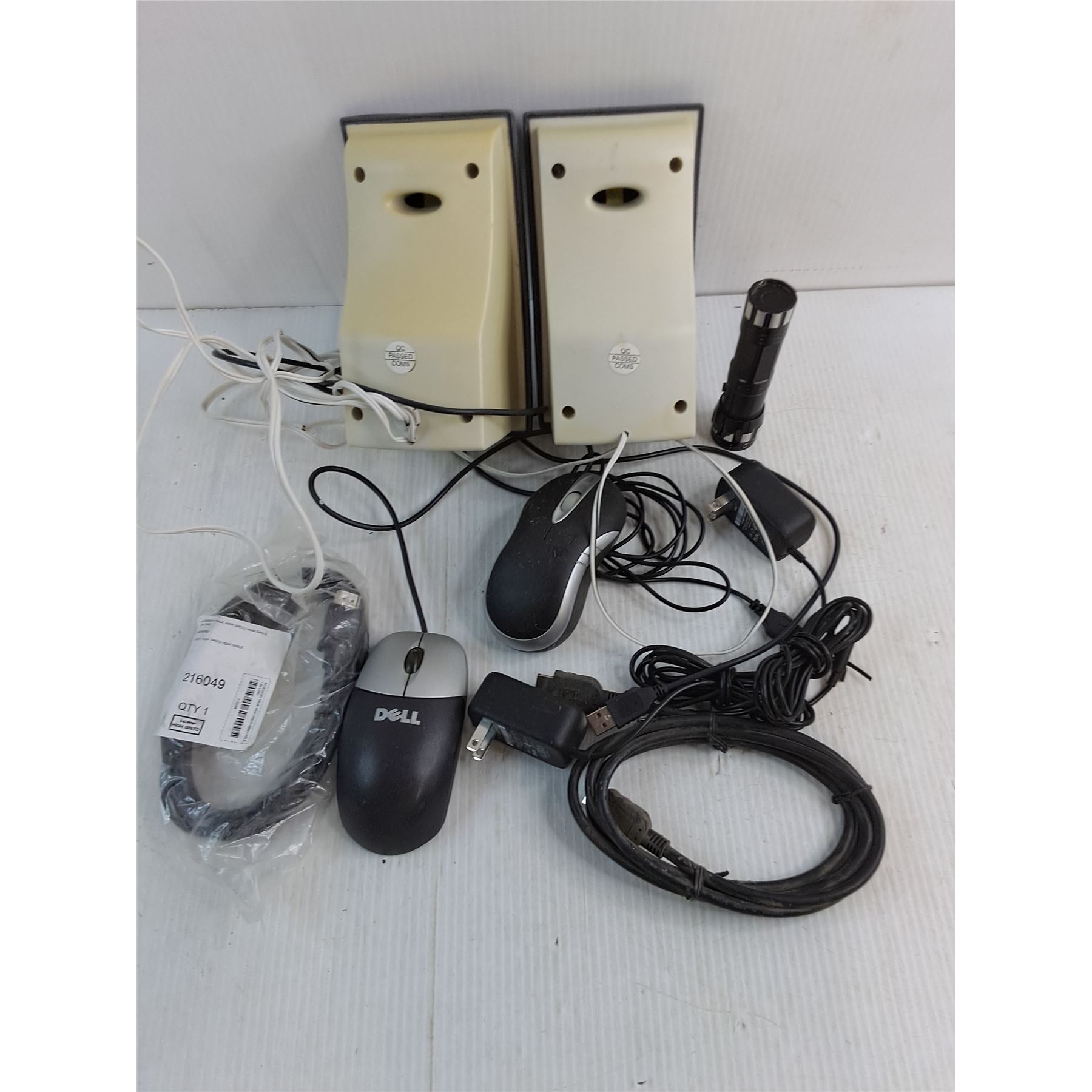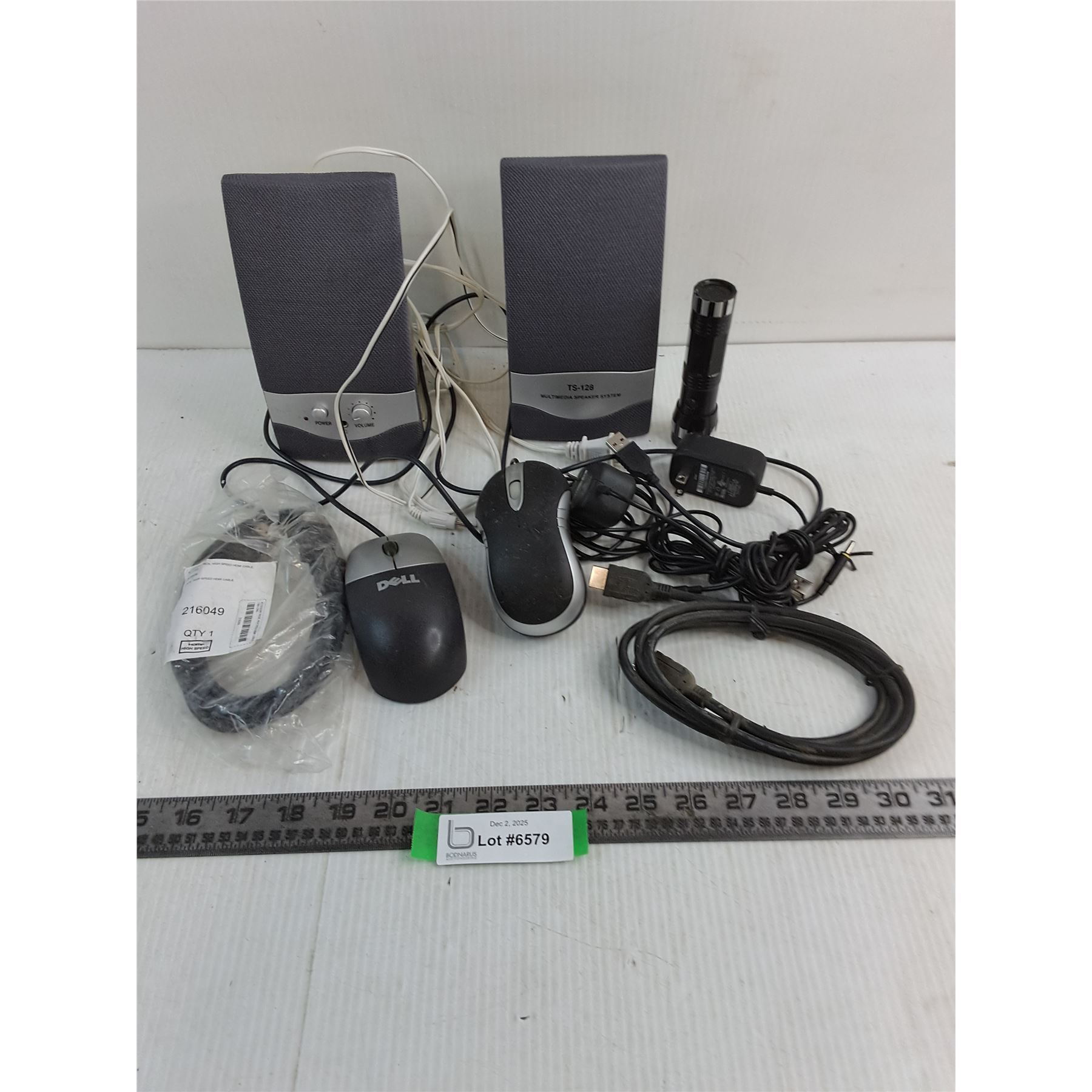 Pair of Bookshelf Speakers, Mice, Flashlight, HDMI Cords - All Untested