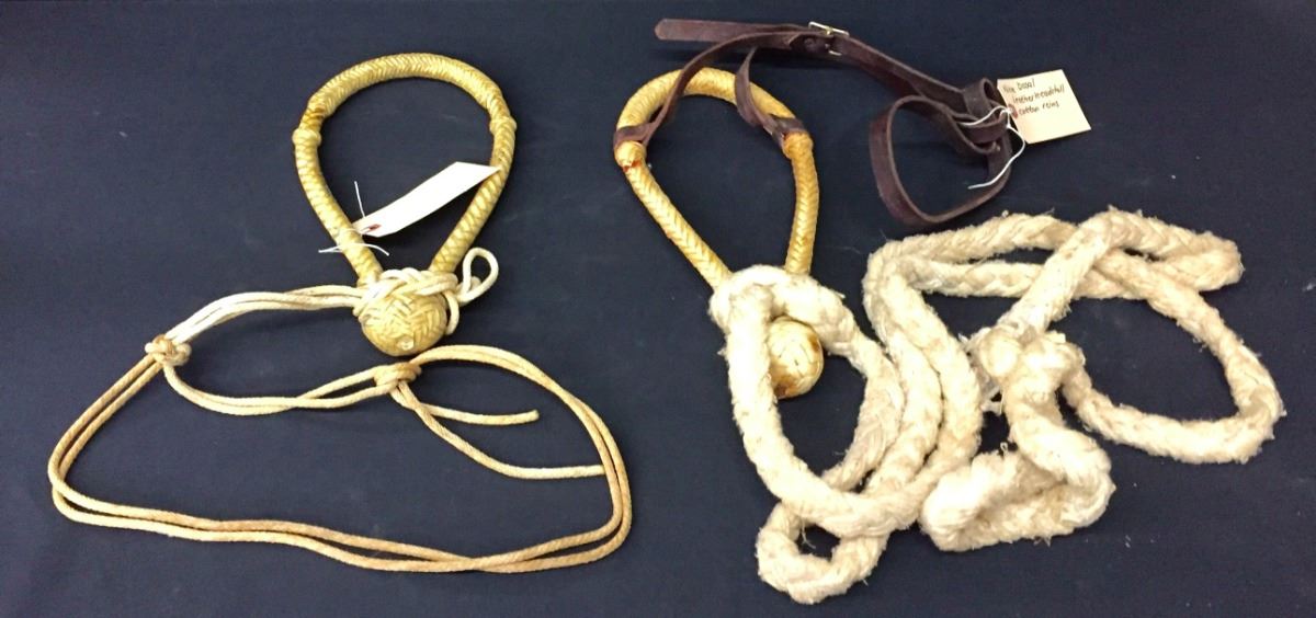 There are 2 bosals in this lot. One comes with a headstall, the other with braided cotton reins. Good condition. Please look closely at the pics as they are an important part of our description. Shipping: There will be a $5 handling / packaging fee for shipping this lot. The actual cost of postage will be added on top of that.