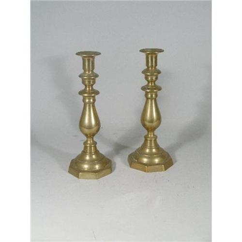 Very Nice Pair of Brass Candlesticks, English, c.1850 - Baluster stems on octagonal bases. Missing push up rods on underside. Nice size - 11"h