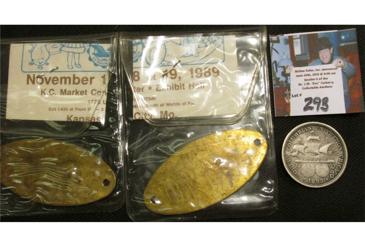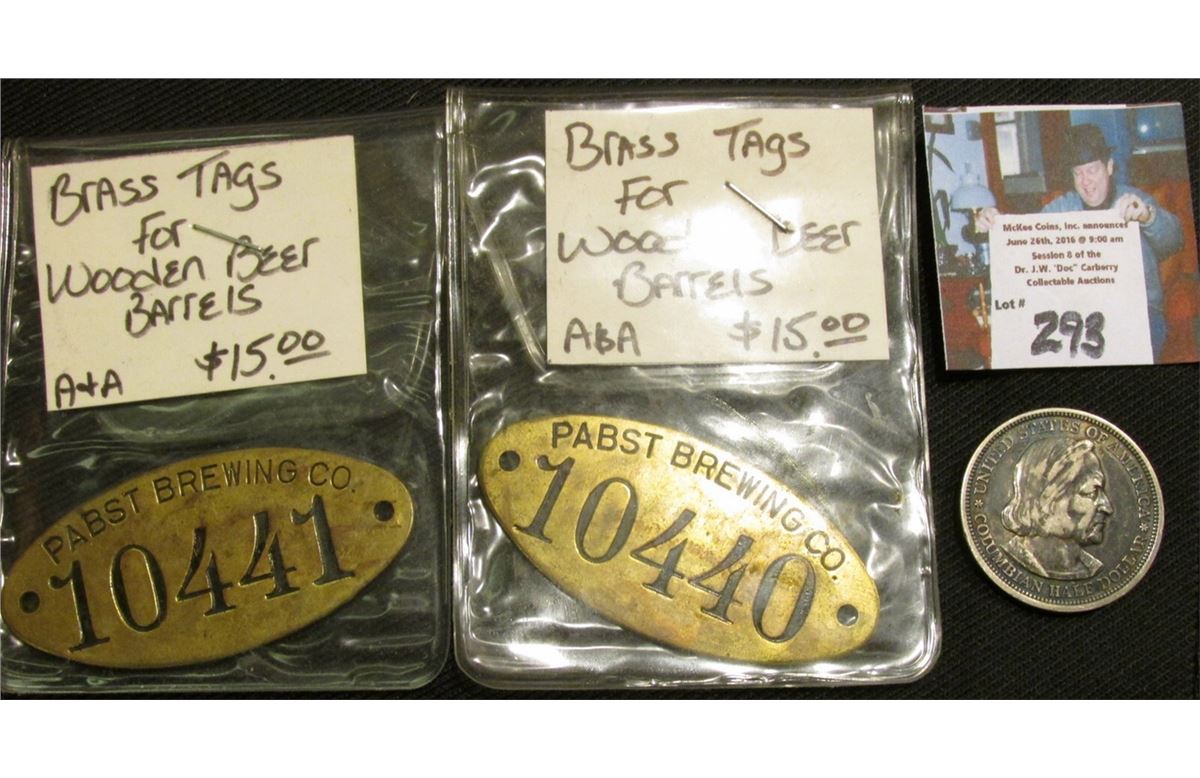 Pair of Brass Tags for "Pabst Brewing Co. Wooden Beer Barrels; & 1893 Columbian Expostition Commemorative Half-Dollar.