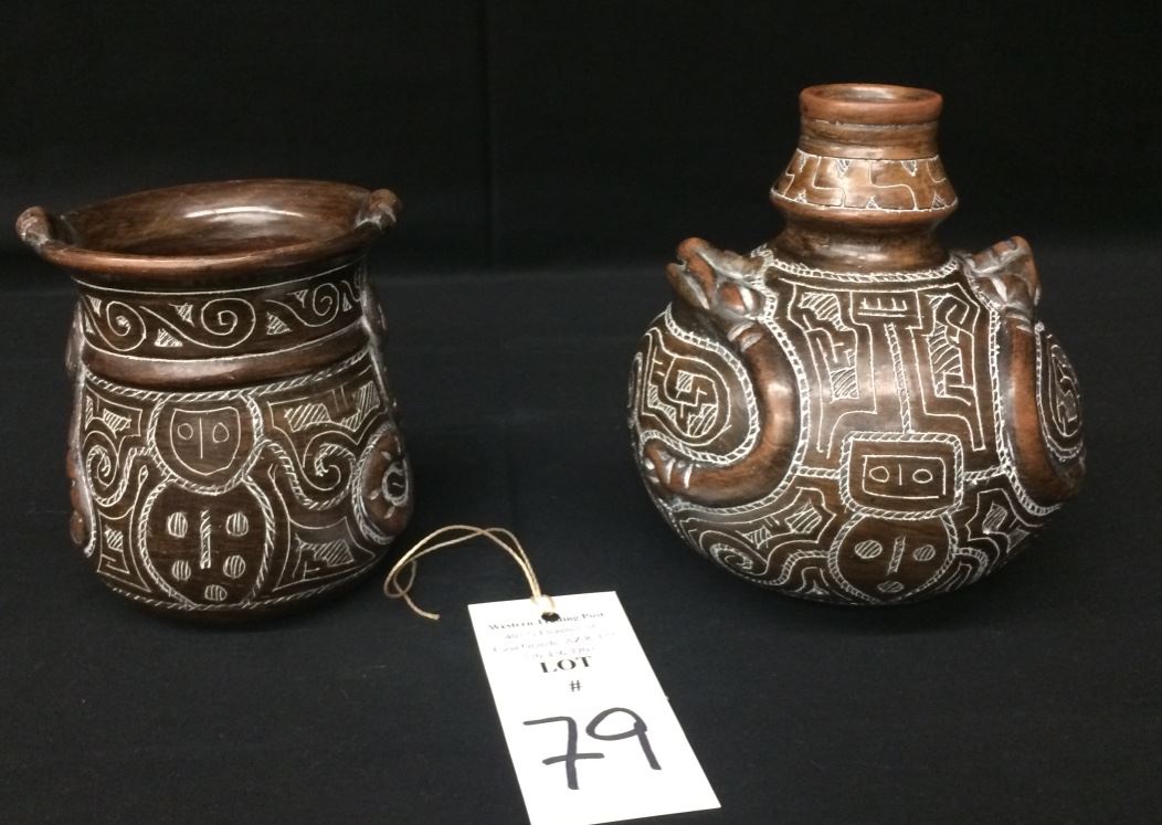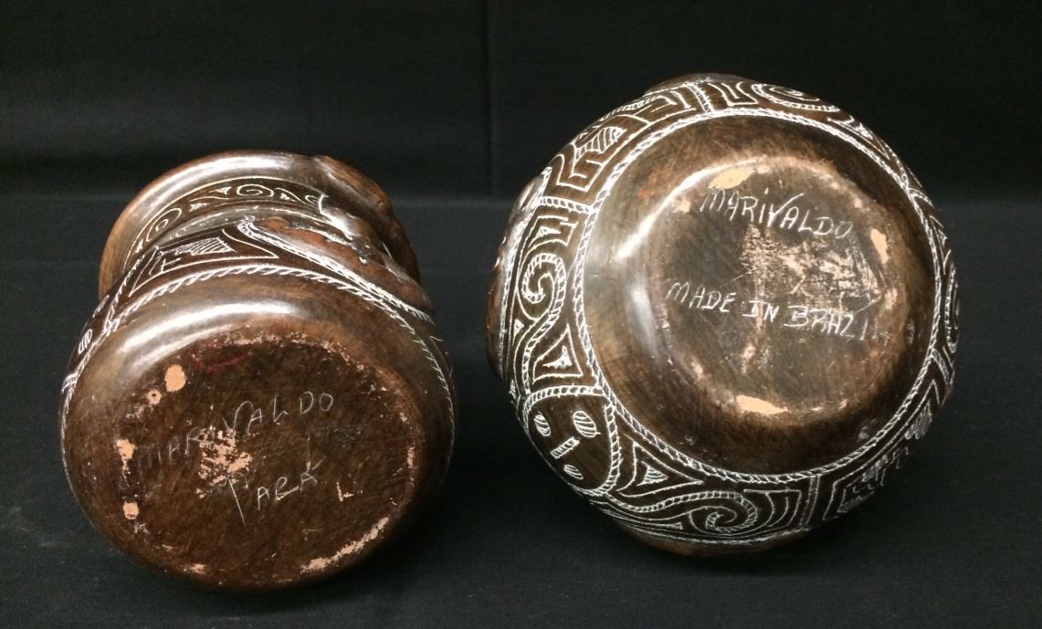 These handmade pots are signed Marivaldo and come together for 1 money! They are 5.5” and 7” tall and are hand etched. Good condition. Shipping: There will be a $10 handling / packaging fee for shipping this lot. The actual cost of postage will be added on top of that.