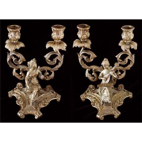 Pair of Bronze Candelabra, Lady Musicians #975290