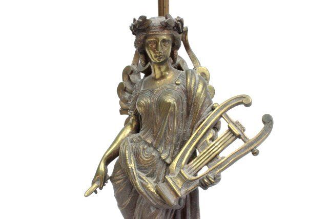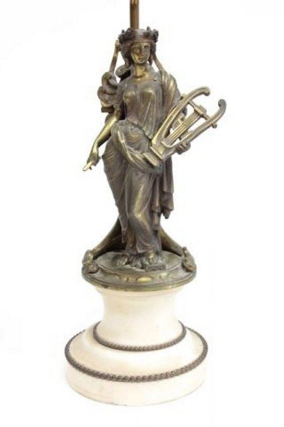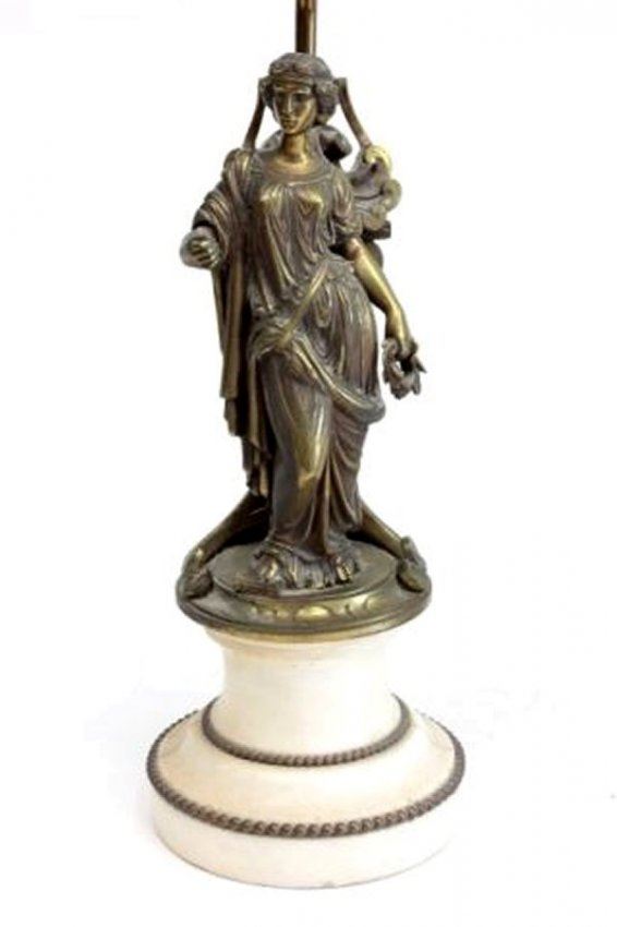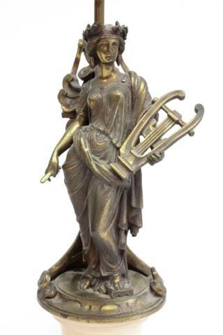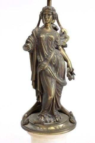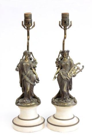 "Classical Women" on marble bases. Approx. 9.5" H, 13.75" H with base. (3433.1) Good condition.
