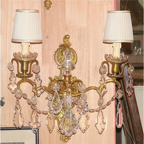 <tr><td>Title:Pair of Bronze and crystal wall sconces</td></tr>