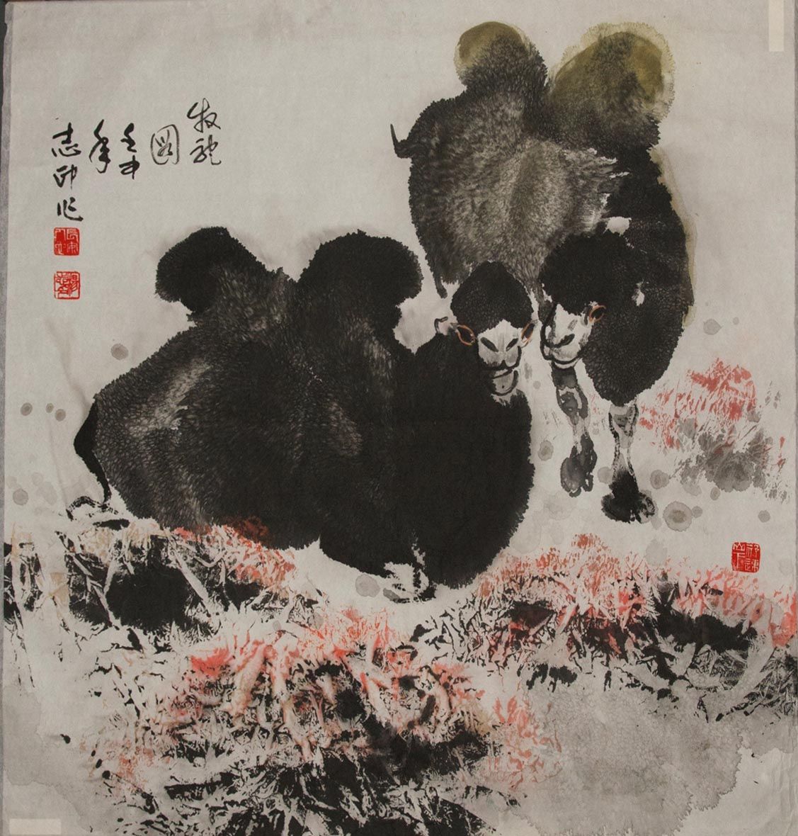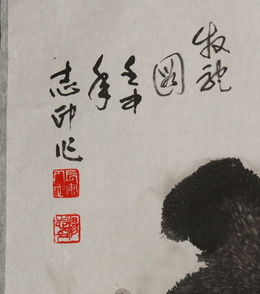 Pair of camels, Chinese ink and watercolour on paper, signed Yang Zhiyin with three red seals. 69 cm x 69 cm. Provenance: T. Ng Collection Toronto.
