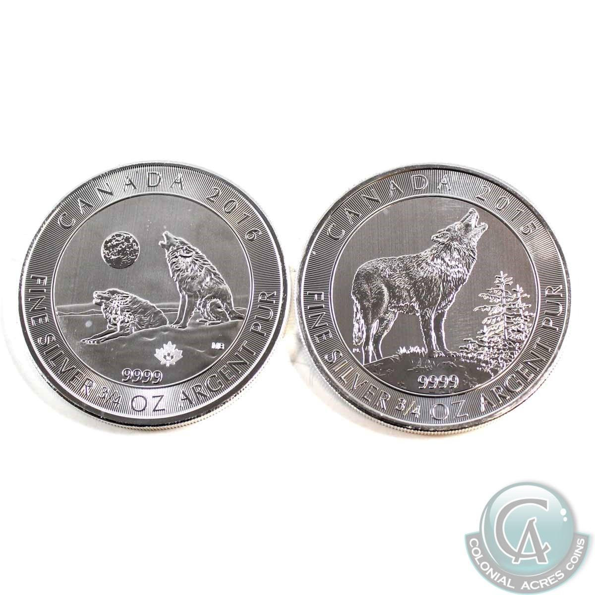 Pair of Canada $2 3/4oz. .999 Fine Silver Coins - 2015 Grey Wolf & 2016 Howling Wolves (Tax Exempt). 2pcs.