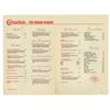 (Disneyland, c.1980s) A park-used menu, child's menu, and placemat from the Carnation Ice Cream Parlor. The cardstock menu features the restaurant logo on the cover and a list of breakfast and dessert fare in the interior. The paper child's menu lists food options on the cover and contains games. The textured paper placemat has a large, central logo. Ranging in size from 8.5"x6.75" to 9.75"x13.5", the menu is in good condition and the child's menu and placemat are in very good condition. The menu exhibits separation to the spine, creasing to the covers, corner bumping, edge wear, and toning. The placemat has some crumpling at upper right, and the child's menu shows light handling.