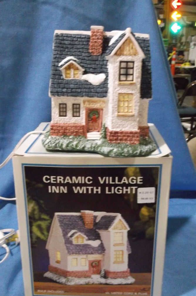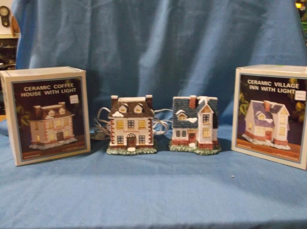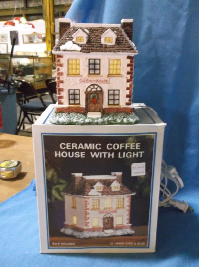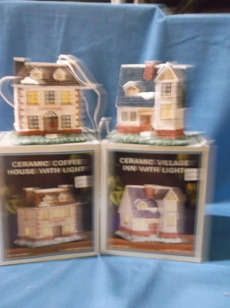 1- hand painted coffee house wth light in box & 1- Village with light & in box.....