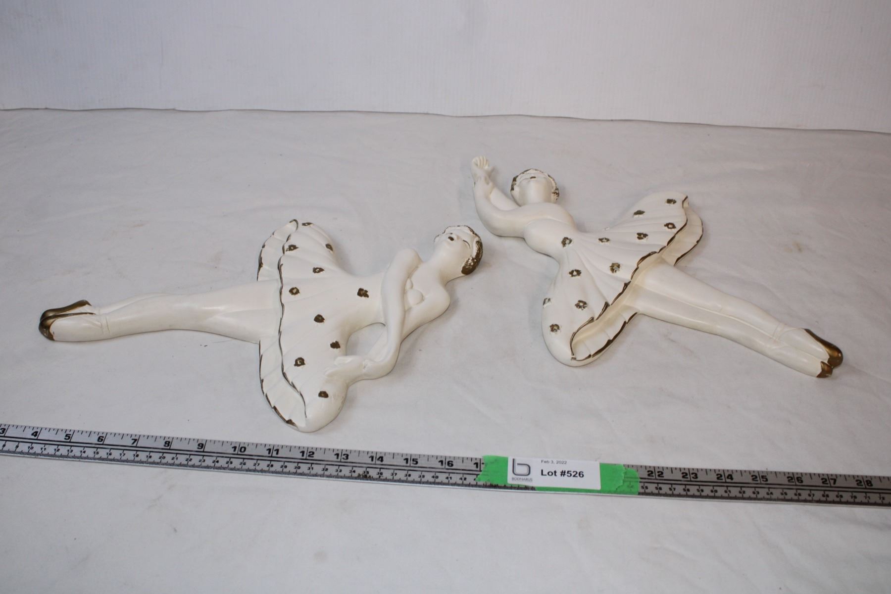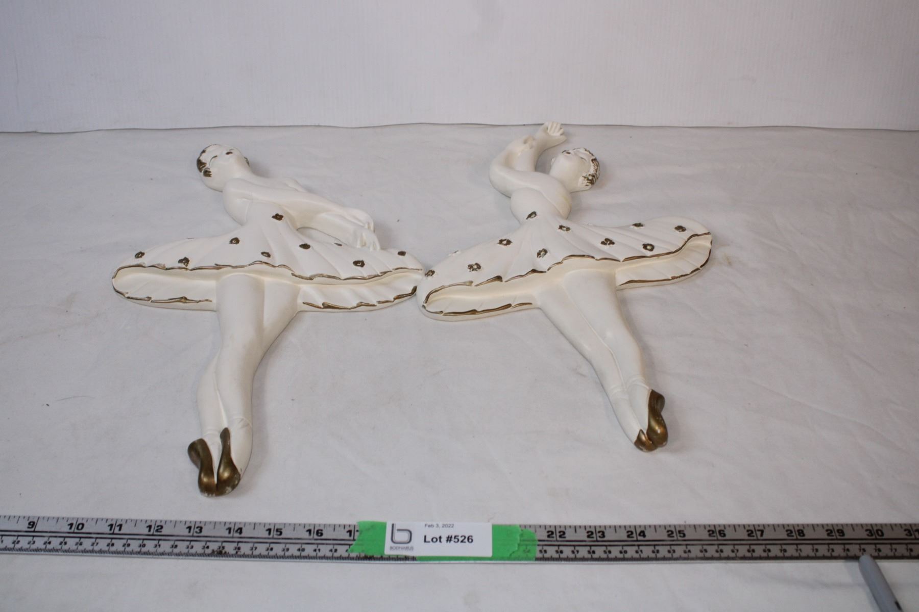 Pair of Chalkware Ballerinas Wall Hanging with Mounting wires Attached