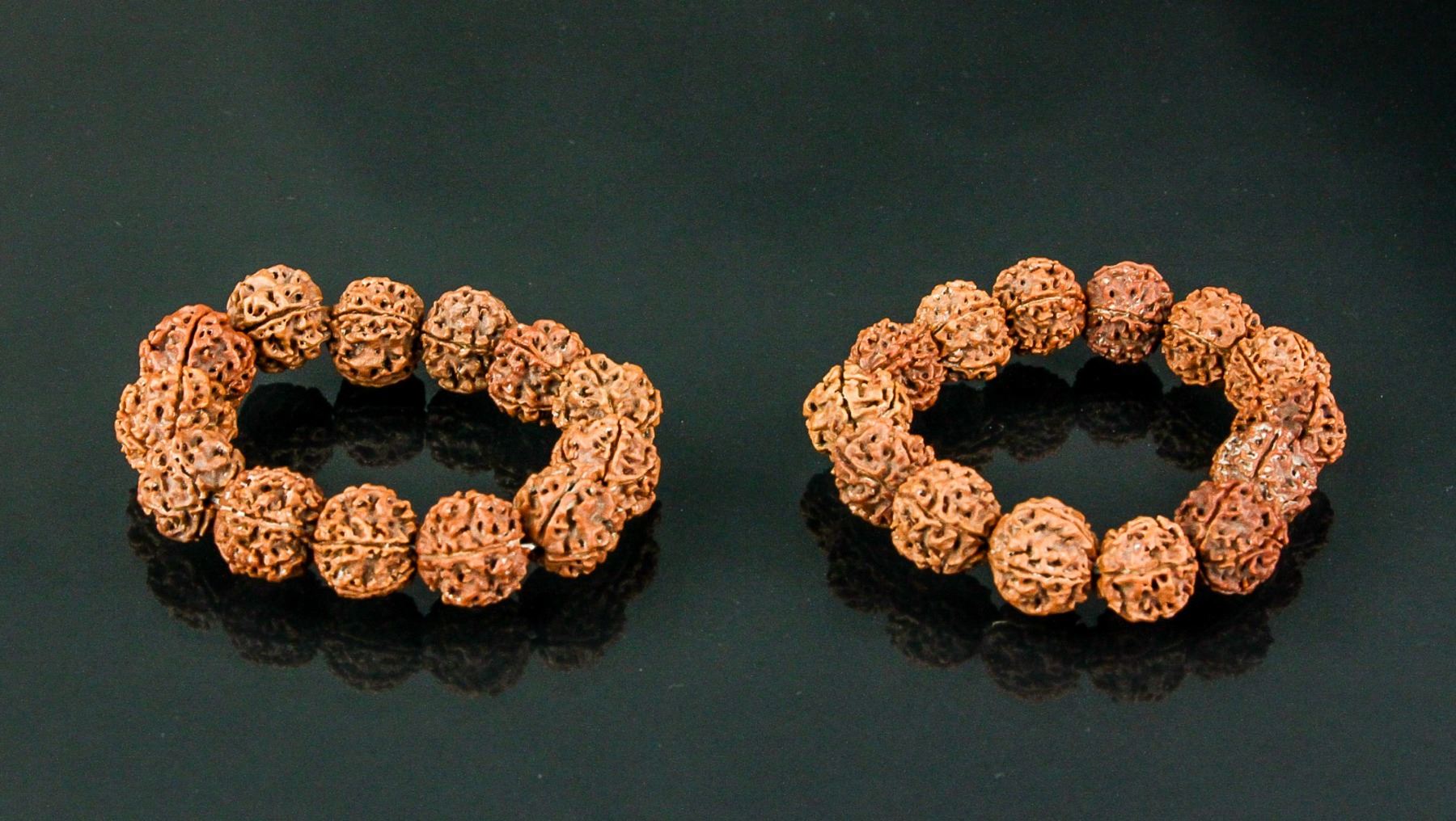 Pair of Chinese Bodisu bracelets; each comprised of thirteen seeds of Elaeocarpus sphaericus; D: 6 cm, 54 grams both