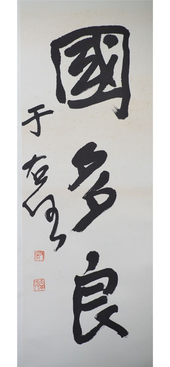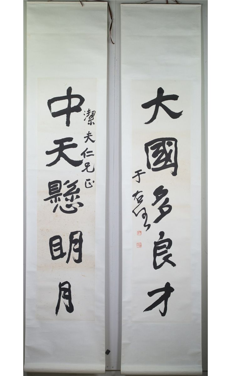 Pair of Chinese calligraphy, hanging scrolls, signed and sealed Yu Youren (1879-1964); 137 cm x 33.5 cm