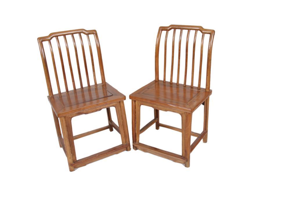 Pair of Chinese Chairs Made of Elm With natural finish, rectangular spindled back type of side chair