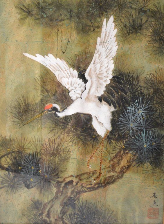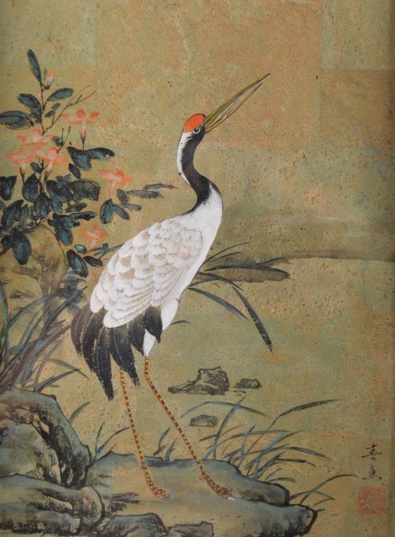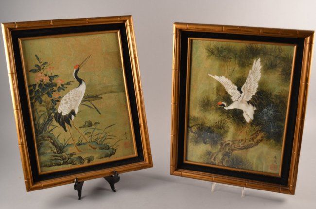 Pair of Chinese Cranes in Frames 19 1/4" tall x 15 1/4"