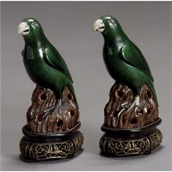 Pair of Chinese Export Green and Aubergine Glazed Parrots