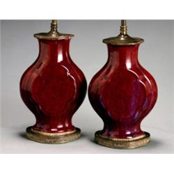 Pair of Chinese FlambT Glazed Flask-Form Vases, 19th Century, Each mounted as a lamp., Heig...