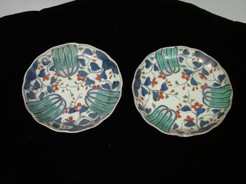 (China 19th Century) Glazed earthenware with floral motif, chip on edge of one plate, dia. 8" each.