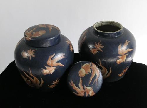 China (Late 19th Century) Glazed ceramic with carp motif, 10" by 10".