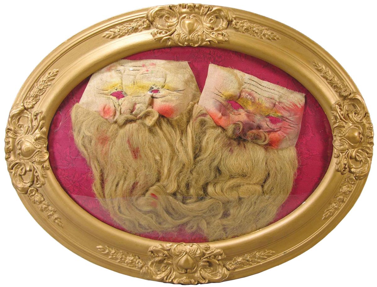 Pair of Chinese Masks. These masks came out of one of the last turn of the century brothels. They were found in the underground cribs at the Dumas Brothel in Butte, MT. These masks were worn by the gentleman patrons to disguise their identity when entering the brothel. Very good original condition, framed under glass. Comes with letter of provenance from Rudy Giecek, proprietor.