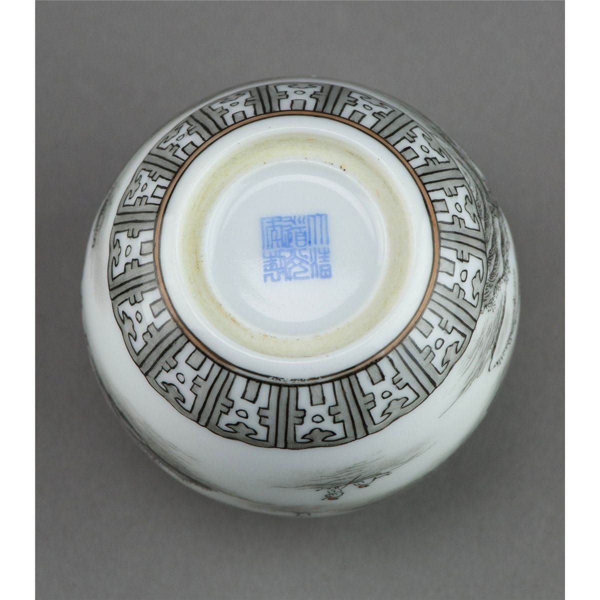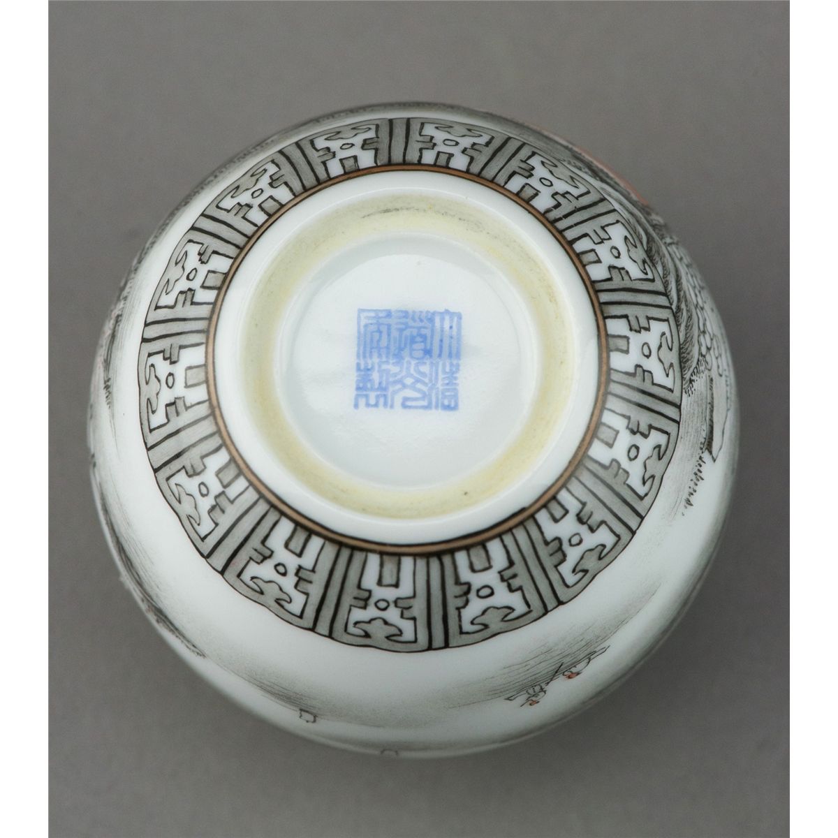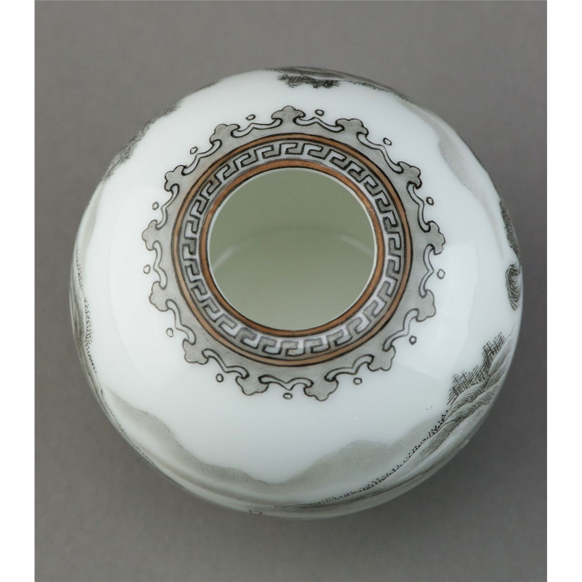 Pair of Chinese porcelain water pots, of globular shapes, painted continuous landscape, Daoguang mark on base; H: 5.5 cm, D: 6 cm, 50 grams each; provenance; Ma Collection Toronto