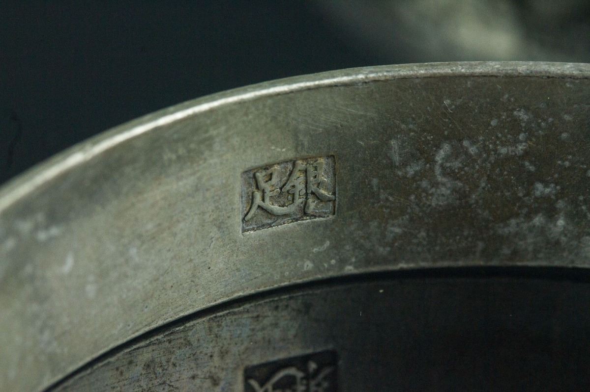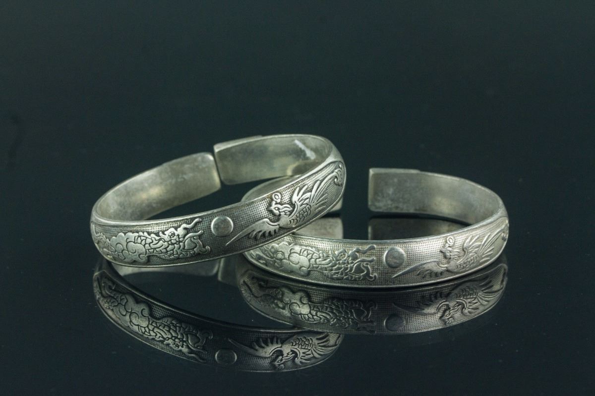 Pair of Chinese silver bracelet; two-character Zu Yin mark stamped inside the bangle; D: 6.5 cm, 100 grams total